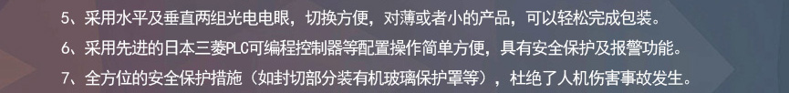 擁有多項專利技術 數千平標準廠房 批量標準化生產 可定制開發(fā)和自動化流水線搭建! 超前技術團隊 先進加工工藝 高精度加工設備 近20年專業(yè)研發(fā)經驗不斷改進、創(chuàng)新、突破!我們定位于專注做中高端全自動熱收縮膜包裝機,請不要拿我們和不同定位的廠家對比!我們是源頭工廠…