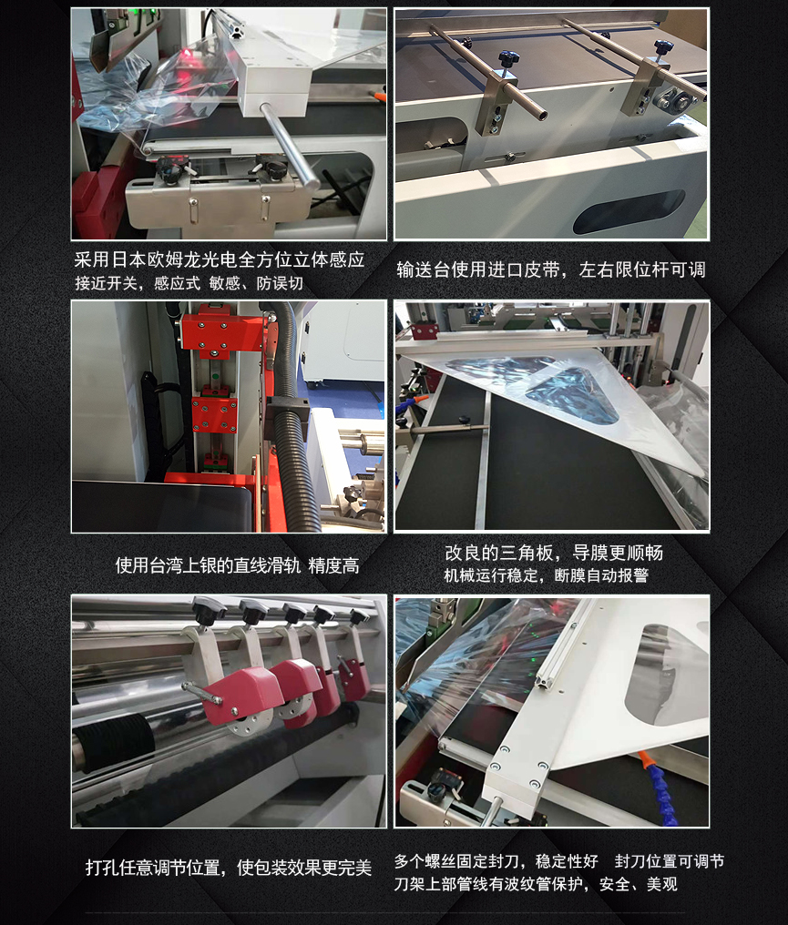 ●采用水平及垂直兩組光電電眼,切換方便,對薄或者小的產(chǎn)品,可以輕松完成包裝。